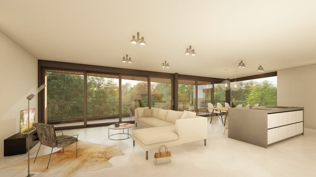 De verdiepingshoge raampartijen en royale balkons (zuid of west georiënteerd) over de volledige breedte van uw appartement, zorgen voor maximale natuurbeleving aan de rand van de Veluwe. U beleeft zo ieder seizoen intens en wordt verbonden met de natuur. Stelt u zich eens voor.. Zittend op uw royale balkon, omringd door groen en bomen geniet u van de rust, ruimte en het fantastische uitzicht op de rand van de Zuid Ginkelse Hei. Dat is wonen in een appartement van De Parkwachter!